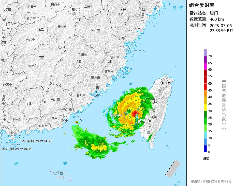 7月7日凌晨,中央气象台表示,今年第4号台风“丹娜丝”的中心,已于7日凌晨0点钟前后,在台湾嘉义县沿海登陆,登陆时减弱为台风级,中心附近最大风力有13级(40米/秒),中心最低气压为960百帕。
