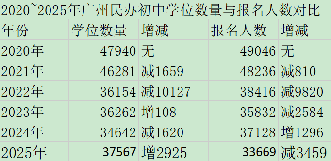 数据可见,只有增城和海珠区,民办初中学位比上一年略少,其余9个区都是增加。说明了各区初中入学需求增加的压力,民办初中成为公办初中的补充。
