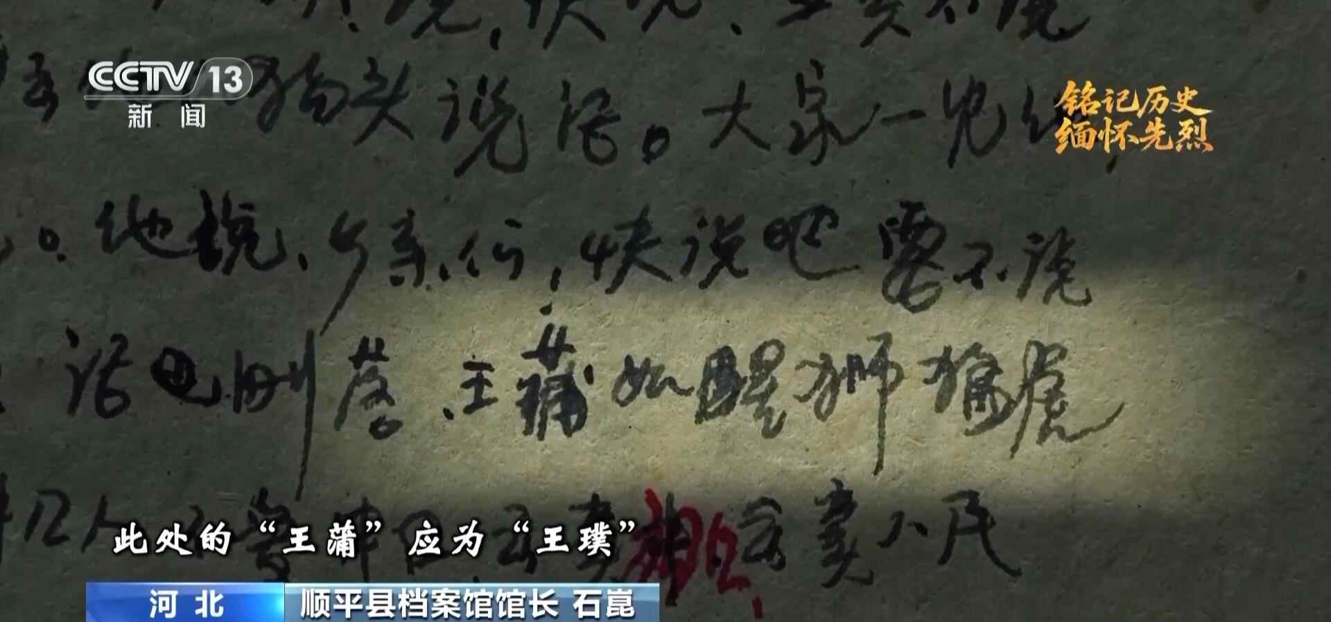 顺平县野场村村民 石兰科:我小时候人们经常讲王璞,有一次,有个人鬼鬼祟祟地想过去,王璞说不行,不能过,必须有路条,结果截住他了。那时候村里一查,他确实是个特务。
