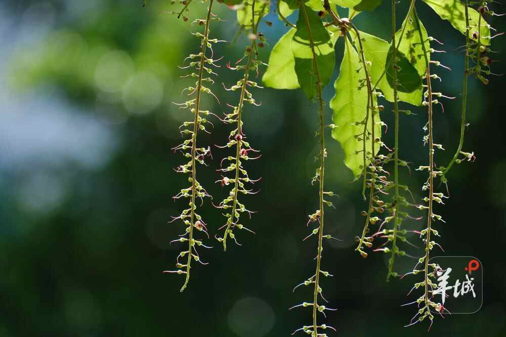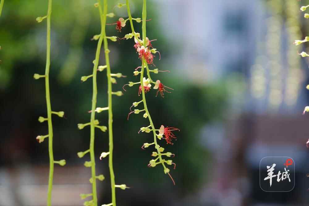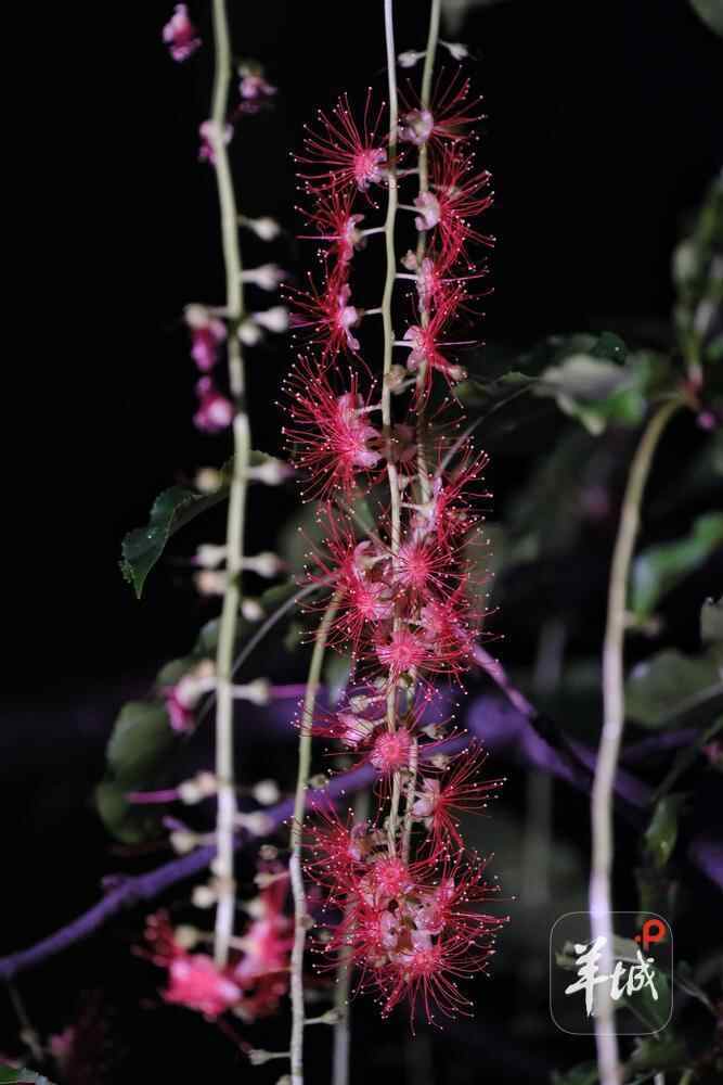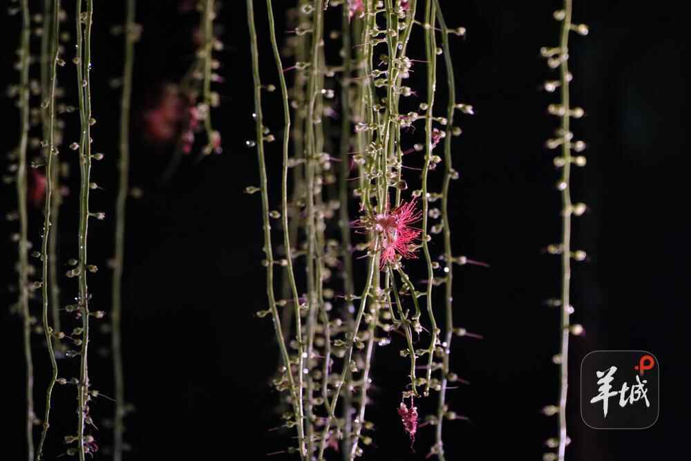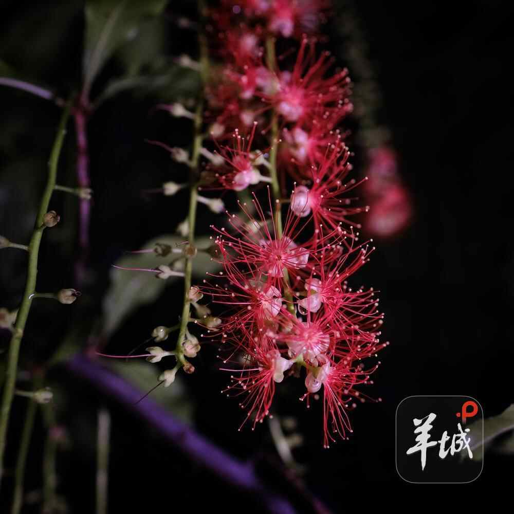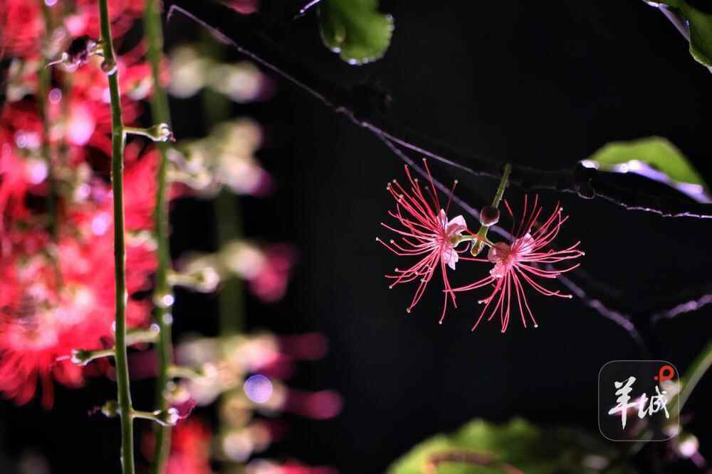 7月6日晚,雨后羊城格外清新,在人民公园,夜幕下,一串串艳红花朵垂挂枝头,清香袭人,成为夏夜羊城一道浪漫的风景线。