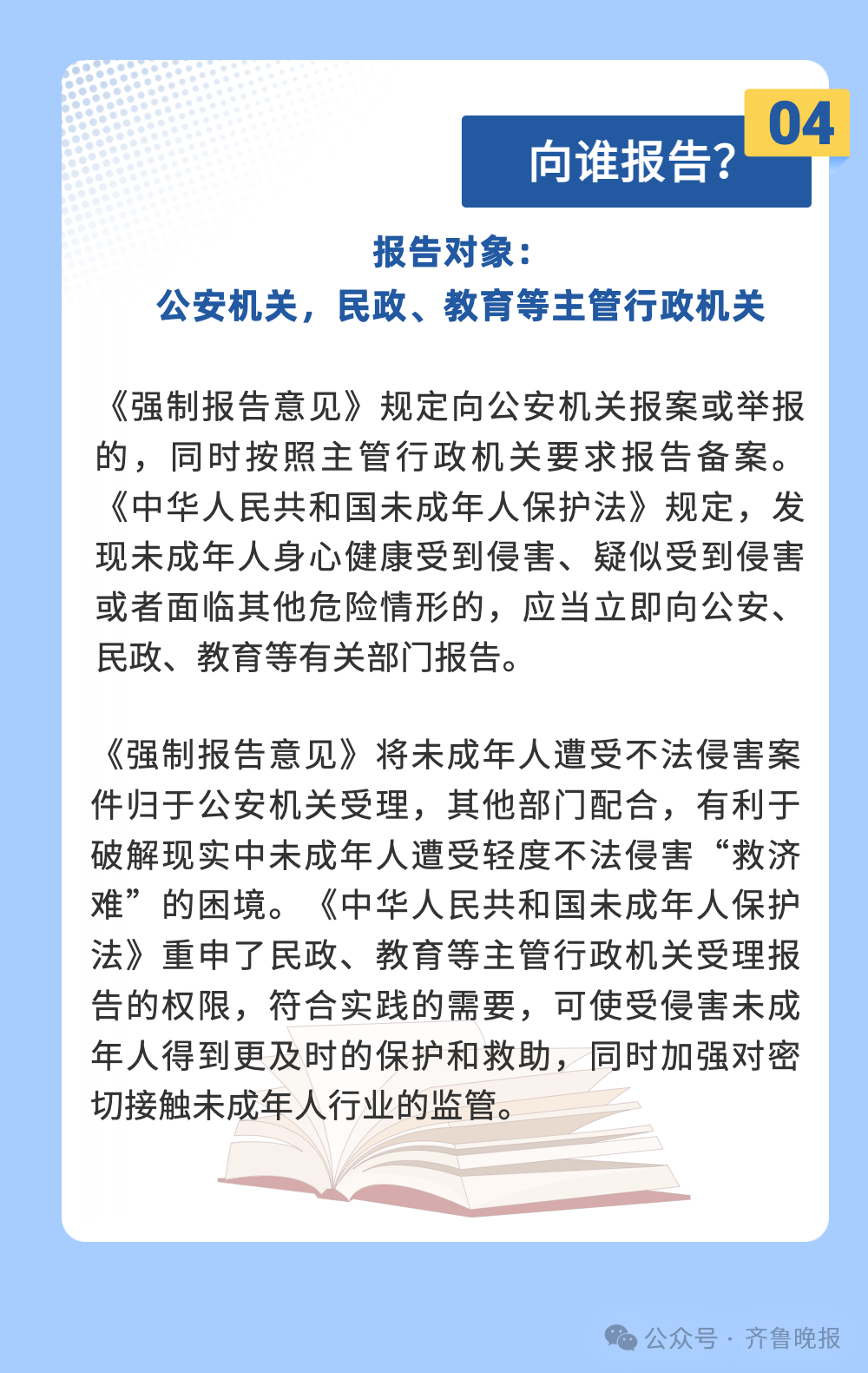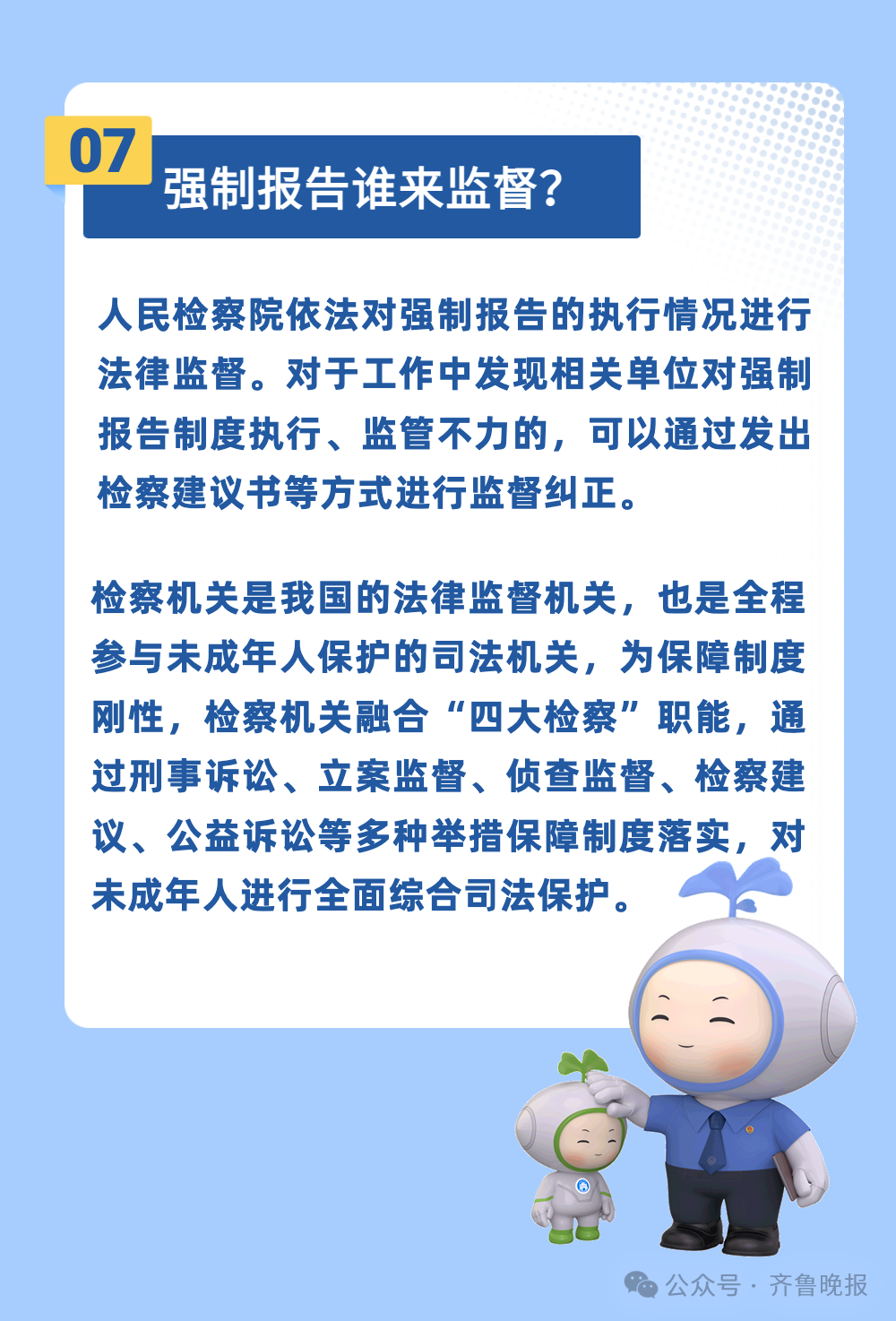 “有效落实强制报告制度是及时发现、制止侵害未成年人犯罪的重要举措,也是保护未成年人合法权益的重要方式。”检察机关表示。