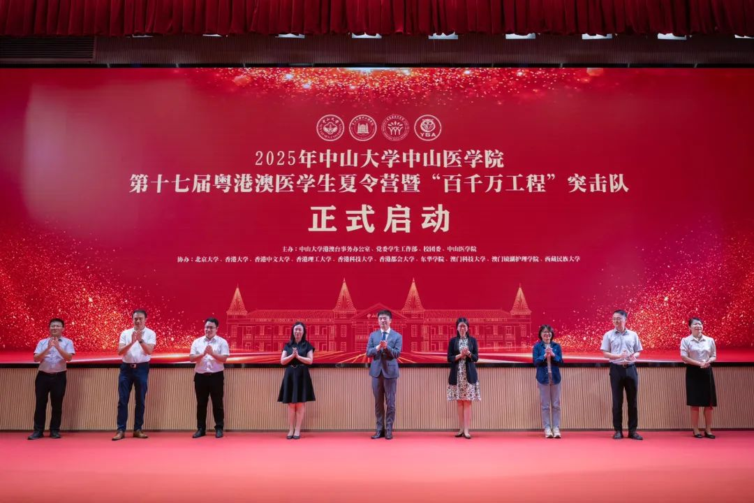在领导嘉宾们及全体师生的共同见证下,中山大学中山医学院第十七届粤港澳医学生夏令营暨“百千万工程”突击队正式出征。