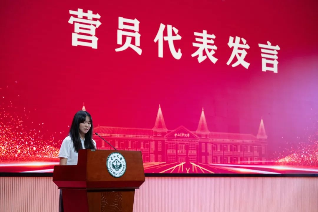 中山医学院临床医学专业香港籍学生姚晓敏作为营员代表发言,她代表营员们立下承诺:在本次活动全力以赴,做科普“星火”,播撒健康知识入乡间;做调研“耳朵”,倾听基层真声音;做支教“园丁”,为孩童点亮希望;做精神“传人”,传承中大红色基因。让多元视角碰撞火花,将青春论文写在祖国大地!