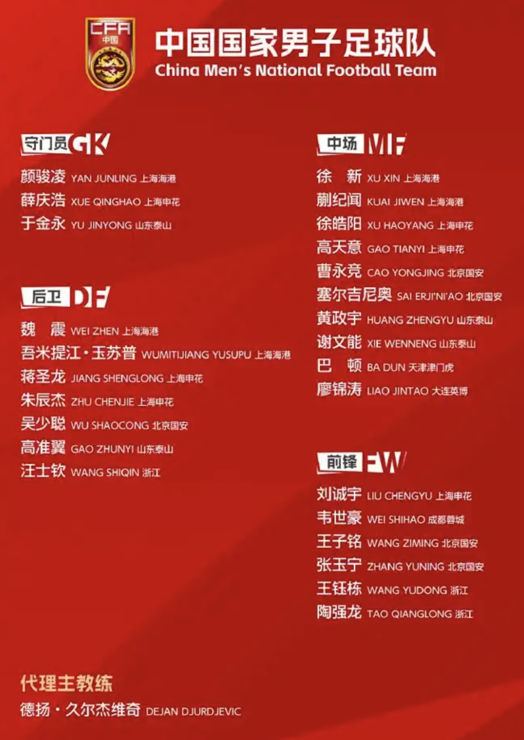 久尔杰维奇表示,东亚杯是新的起点,期待新人在比赛中有好表现。