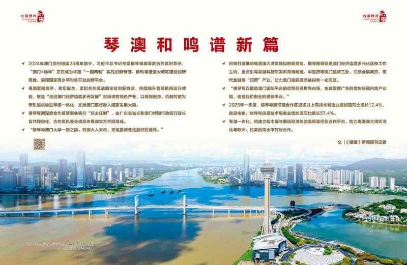 ◇粤澳紧密携手、密切配合,紧扣合作区战略定位创新机制,持续提升管理机构运行效能,聚焦“促进澳门经济适度多元发展”目标培育特色产业,以规则衔接、机制对接为牵引加快推进琴澳一体化,支持澳门更好融入国家发展大局。