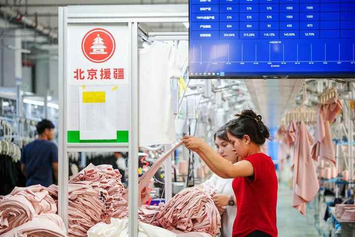 去年8月,北京市援疆和田指挥部促成这家企业在和田落地,构建起集互联网平台运营、高品质时尚服装加工、织布印染为一体的产业生态,开创新疆纺织服装全产业链发展新格局。