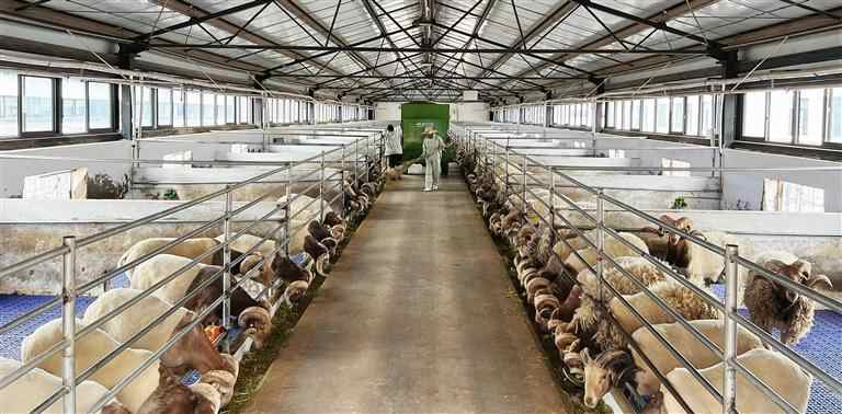 天津市援建的昌都市阿旺绵羊现代化养殖基地。