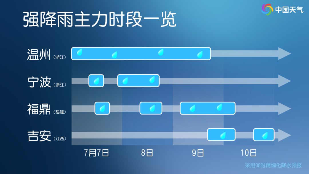 受“丹娜丝”影响,7日至9日,浙江、福建、江西的风雨也将逐渐加强,浙江大部、福建中北部、江西中部将迎来大到暴雨,局地大暴雨甚至特大暴雨。
