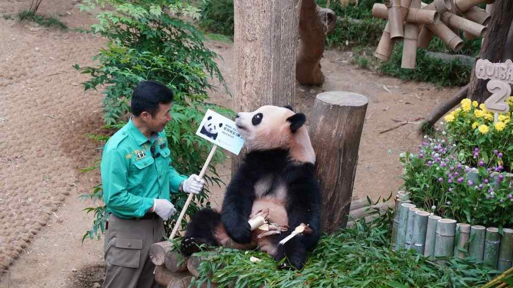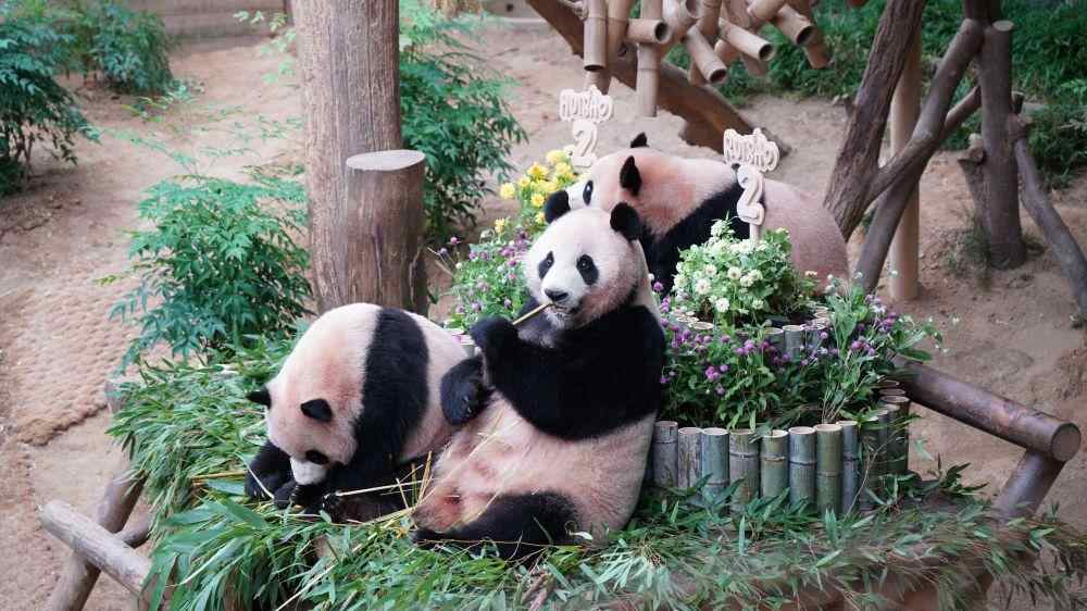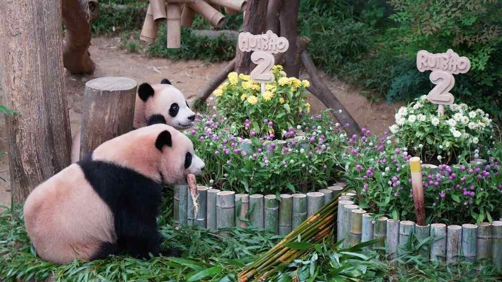 韩国爱宝乐园大熊猫“睿宝”“辉宝”庆生