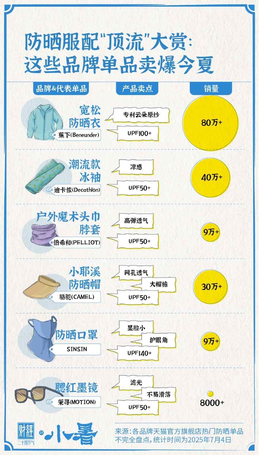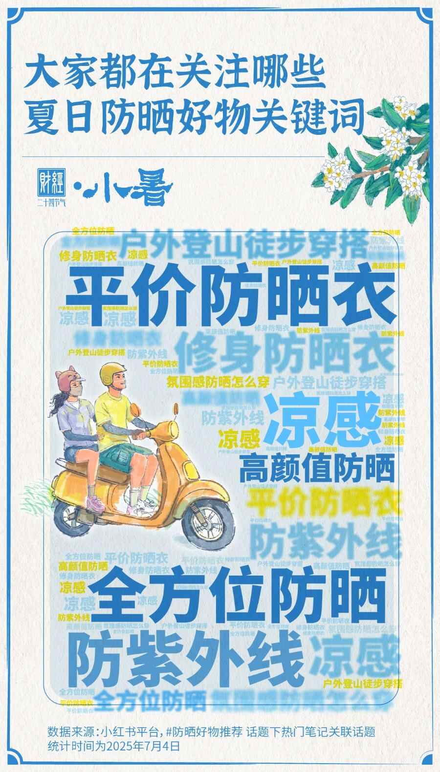 今日小暑(2025年7月7日),全国多地气温升高。此时持续攀升的,不仅是气温,还有同样火热的“防晒经济”。从通勤路上的防晒衣、遮阳伞,到户外运动时的防晒面罩、冰袖,各类物理防晒产品成为许多人的夏日出行标配。