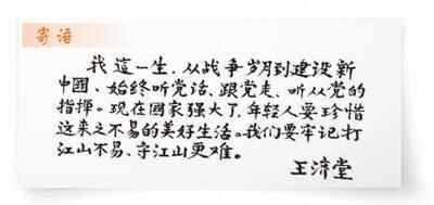 “说不怕那是假的,破坏机器时手心全是汗,但想到前线的战士们,手就稳了。”回忆起往事,王济堂拳头紧握。