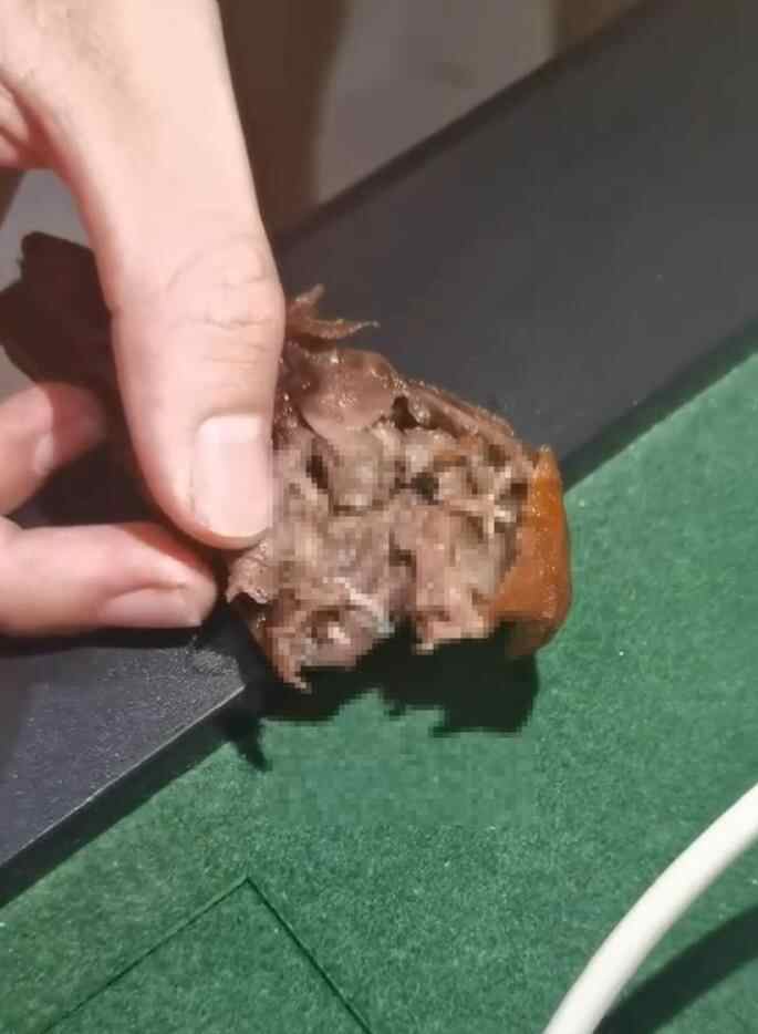 网友发布的视频中,掰开鸭头,明显看到有数条活蛆蠕动。视频发布者表示,他是一名在读大学生,他从当地修正路一家卤味餐馆购买了鸭头后,7月6日凌晨,在鸭头中吃出了活蛆,之后餐馆提供的补偿方案为赔偿50元。记者私信该网友,未获回应。