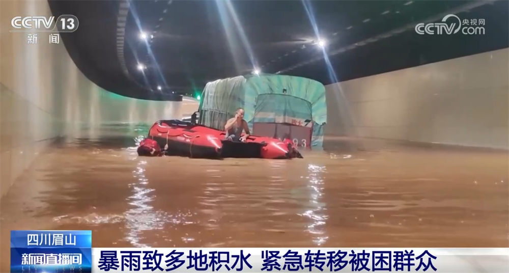 凌晨2点,眉山天府新区的一处隧道积水严重,最深处超过2米,且水位持续上涨,有3辆车被淹、3人被困,消防员携带救生衣和破拆工具涉水接近被困车辆,随后利用橡皮艇将被困的3人逐一转移出来。
