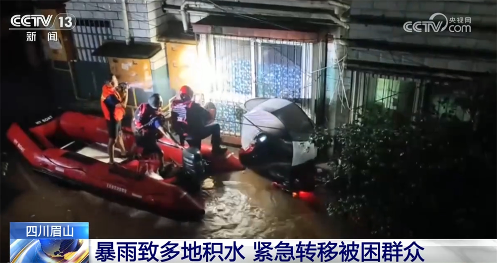 四川眉山:暴雨致多地积水 紧急转移被困群众