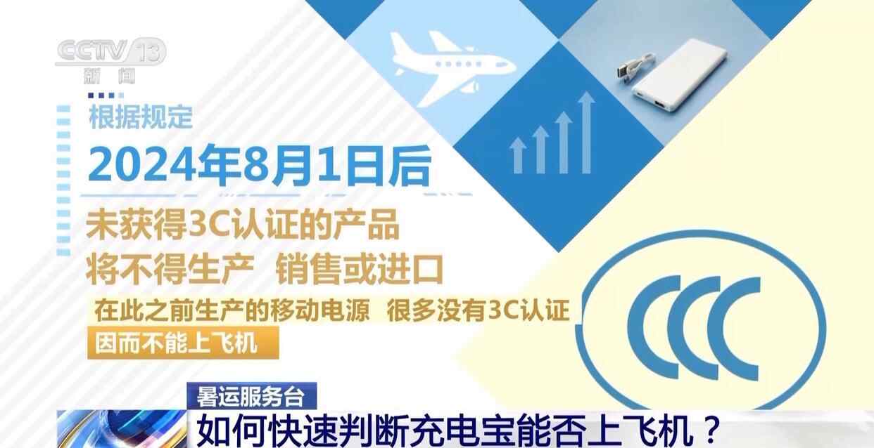 2023年8月1日起,我国开始对锂离子电池、移动电源等产品实施3C认证。根据规定,2024年8月1日后,未获得3C认证的产品将不得生产、销售或进口。在此之前生产的移动电源,很多没有3C认证,因而不能上飞机。