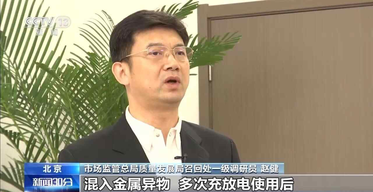 市场监管总局质量发展局召回处一级调研员 赵健:召回原因为电池在生产过程中混入金属异物,多次充放电,使用后存在产品过热甚至燃烧的安全隐患。