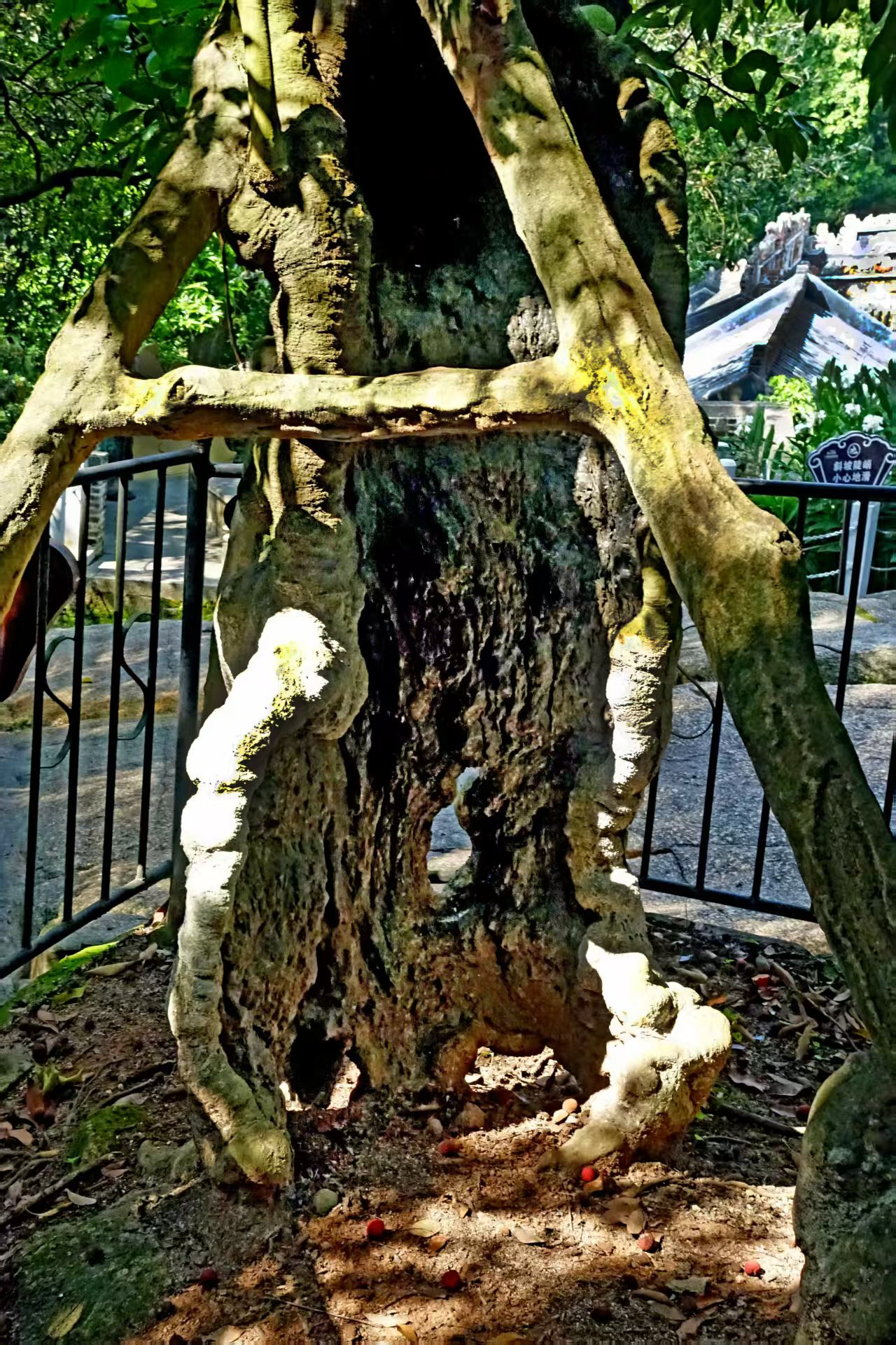 这也是千年古荔的一段传奇。相传它是山上自然生长的“山枝”,明代时已十分高大粗壮。然而,一场罕见的大雪给它带来重创,导致树干只剩半边,仅靠外部一层树皮连接土壤上下。