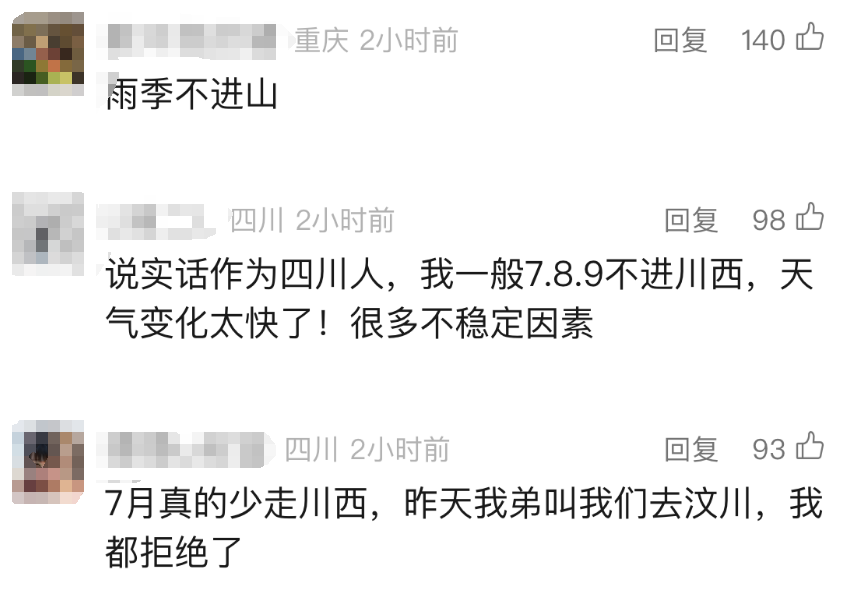 阿坝州文旅部门工作人员也表示,目前正值汛期,可能存在安全风险,部分景区闭园,还有地方存在地质灾害风险,建议推迟一段时间再前来游玩。