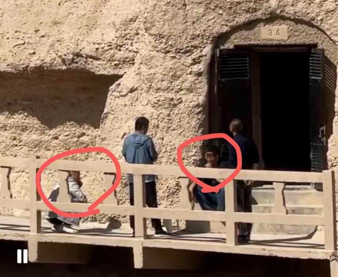 近日,一段“有人在榆林窟抽烟、拍照”的视频引发舆论热议。据网传视频显示,在一标为“34”的洞口,几名男子正在交流,其中有2名男子蹲坐在洞口,正在抽烟。另在标为“35”的洞口,则有一名男子举着手机向外拍摄。