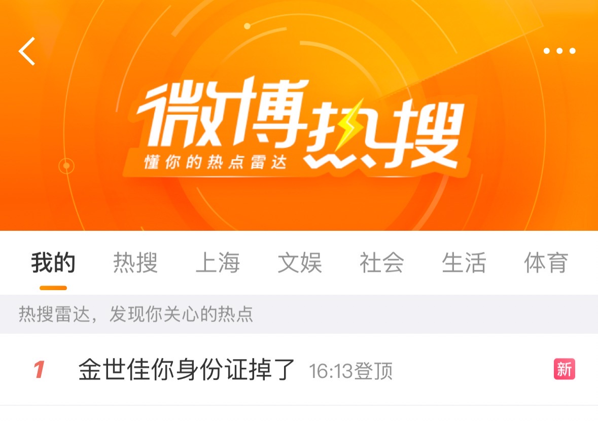 7月6日,#金世佳你身份证掉了#消息冲上热搜,有网友发帖称在上海市徐汇一公园捡到了演员金世佳的身份证。