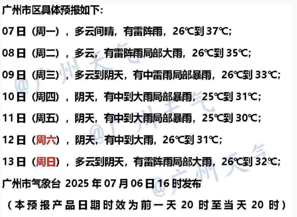 广州市气象台7月6日傍晚预计,受“丹娜丝”外围下沉气流影响,7日至8日广州高温炎热持续,最高气温35℃~37℃,并伴有雷阵雨,局部雨势较大并伴有强雷电和短时大风。预计9日后受季风槽影响,广州降雨渐趋明显,高温逐渐缓解。
