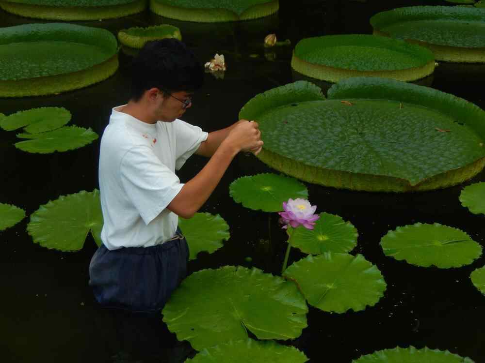 事实上,睡莲及荷花大多在白天开放,为了筛选出最适宜当亲本的品种,陆炜桦曾花近三年时间,顶着大太阳对上百个品种一一进行人工授粉。有时花朵开放,正好是课业繁重时,闲余时间不多,他每每在午休时候坐地铁奔回家中做育种杂交工作,“饭也舍不得吃,灌一碗白糖水,就爬到天台上去了”。