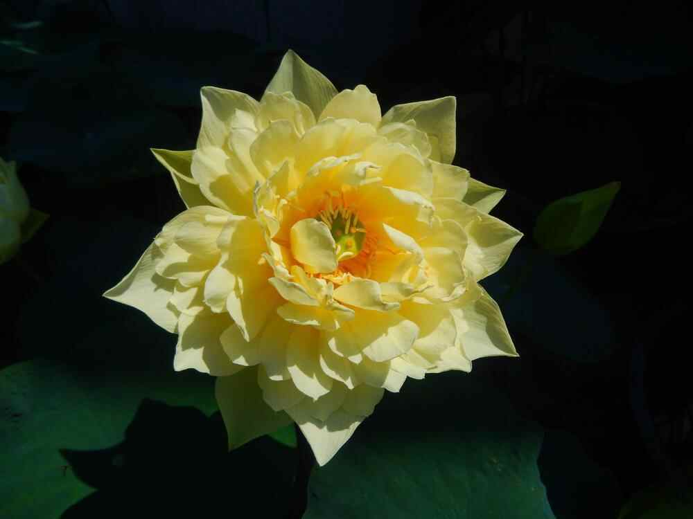 这一年收获后,陆炜桦把得到的种子又播种下去。2022年荷花花季时,他爬上天台,一眼就看到成长得更为茁壮挺拔的“林亭春霭”,金灿灿的非常耀眼。次年,该品种在莲花山试种、观察,先在盆栽种,再换到小池子,直到今年在大池子中开满。这株新荷的盛放,前后花费陆炜桦近五年的时间。