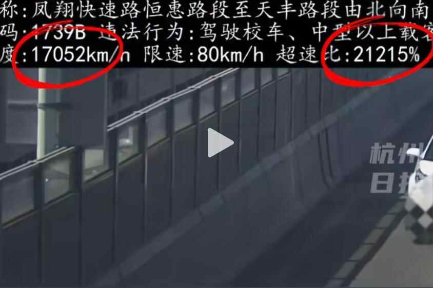 近日,据杭州日报消息,江苏一网友曝光一张超速罚单,被扣12分、罚款2000元,图片显示平均速度17052km/h,限速80km/h,超速比21215%。