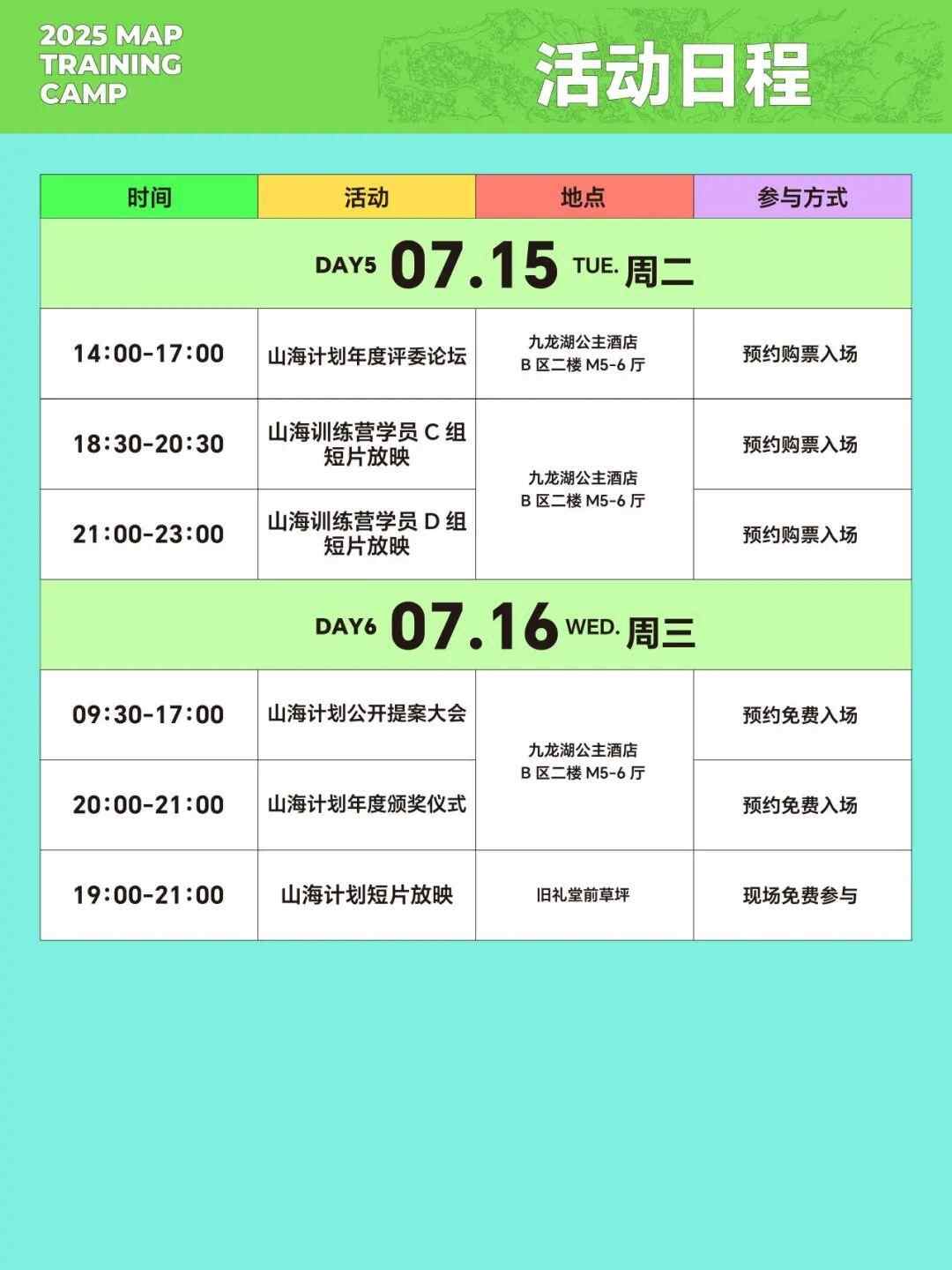 7月16日,山海训练营将举办20强项目的公开提案大会,由上述五位评委对项目进行专业点评,和青年电影人们深入交流,并以专业审慎的态度完成10强项目的选拔。当晚,2025山海计划10强青年导演将正式揭晓。他们将获得创作资金、拍摄器材、后期支持、宣传发行等在内的综合扶持。山海计划多个合作伙伴还将在现场“加码”颁奖。
