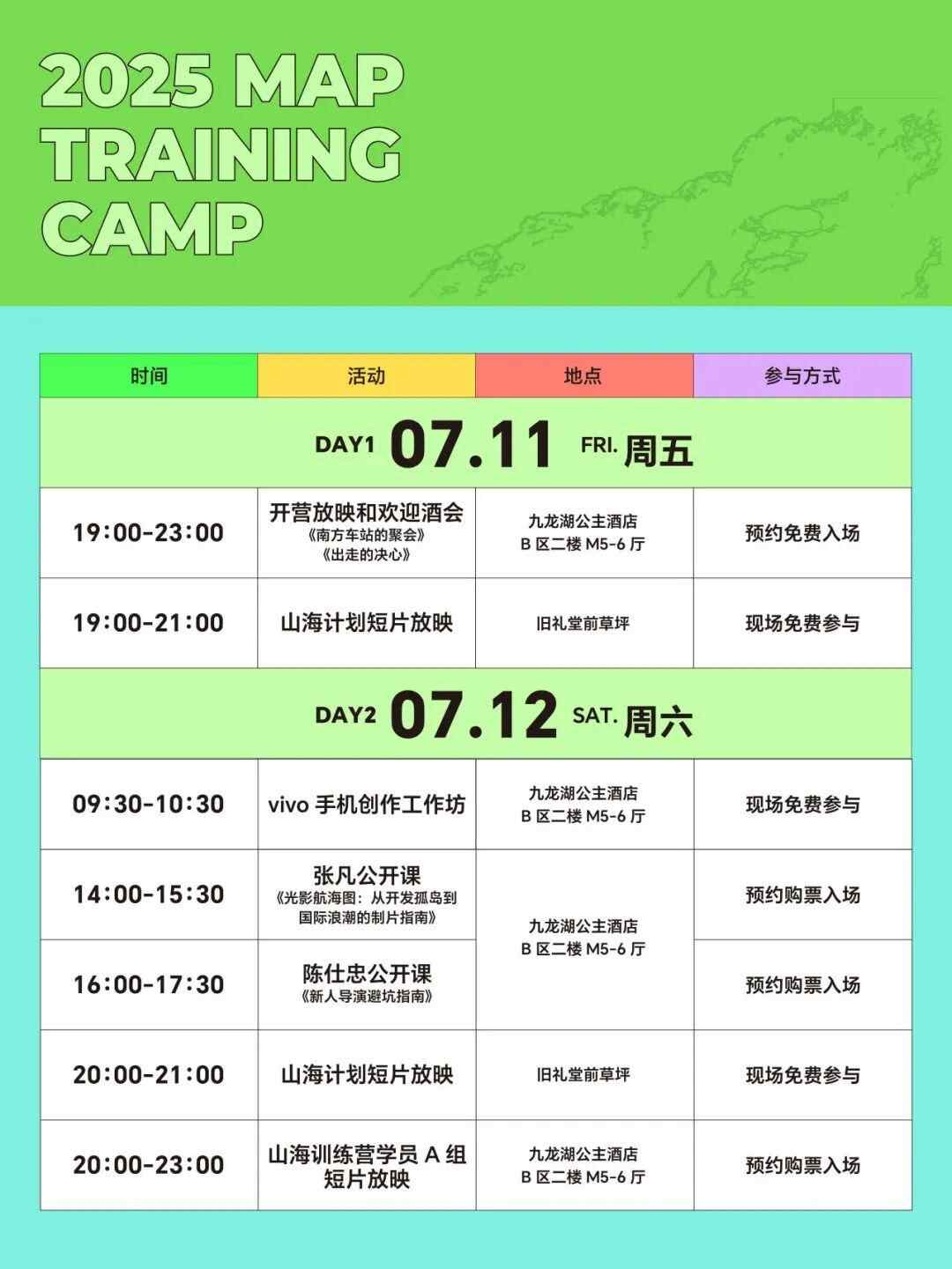 训练营期间,电影公开课、一对一工作坊、影人论坛、驻地创作、影片放映等一系列活动将陆续上演。最为引人瞩目的是,山海训练营还将举办公开提案大会,决选出山海计划年度10强青年导演并进行颁奖。