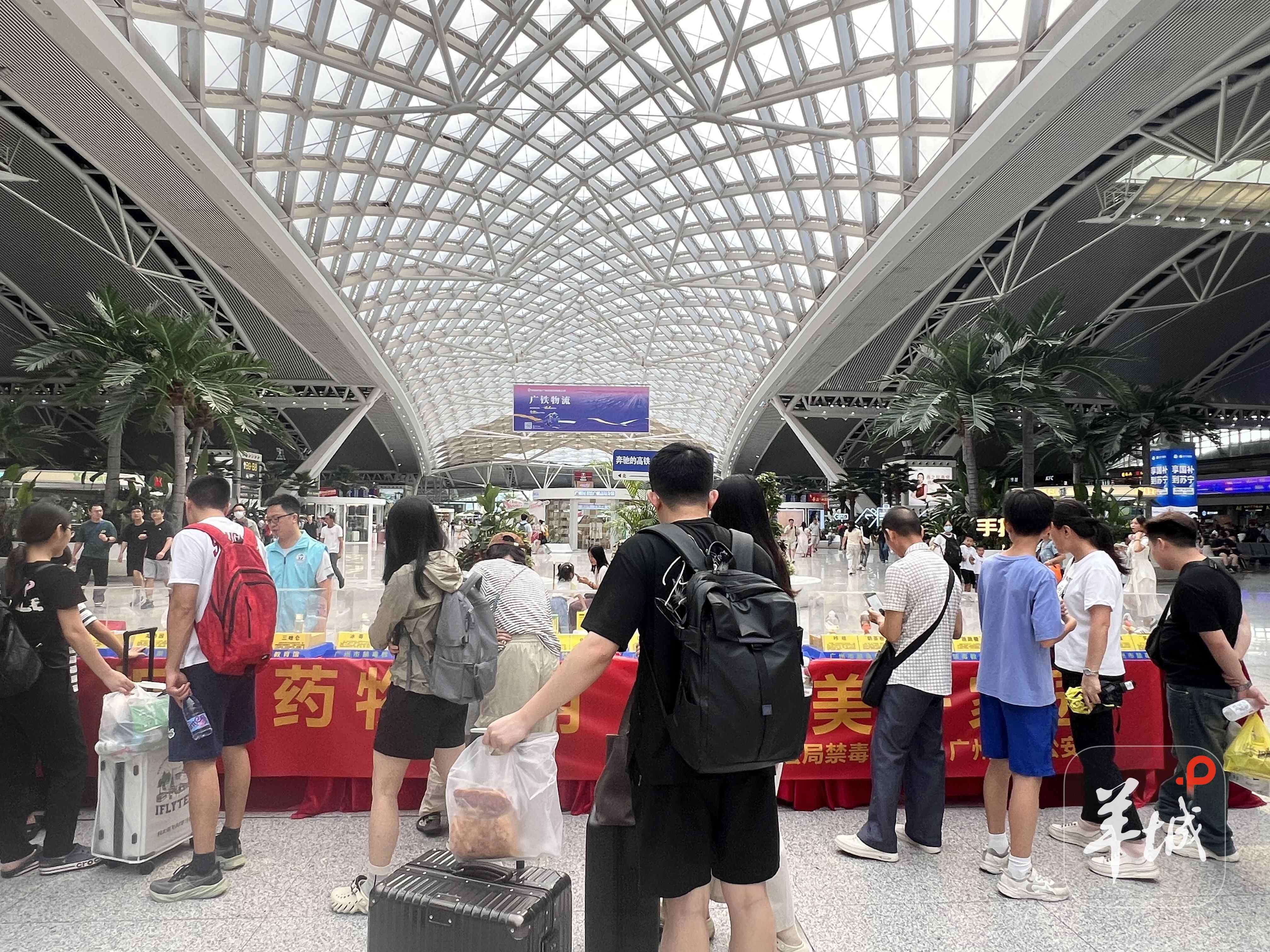 7月5日,广州南站三楼出发大厅,一场名为“拒绝药物滥用 共建美好家园”的禁毒宣传活动吸引了来往旅客的驻足。日均客流量超10万人次的广州南站,化身流动禁毒课堂,让游客零距离接触权威禁毒知识。