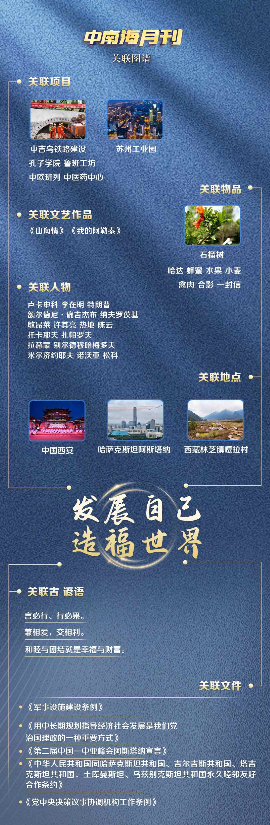 关联图谱中西安、阿斯塔纳两个地点,因中国与中亚五国的特殊情谊,有了别样意义——两年前,首届中国—中亚峰会在古丝绸之路起点西安举行。两年后,第二届中国—中亚峰会来到哈萨克斯坦首都阿斯塔纳,这里正是共建“一带一路”的首倡之地。
