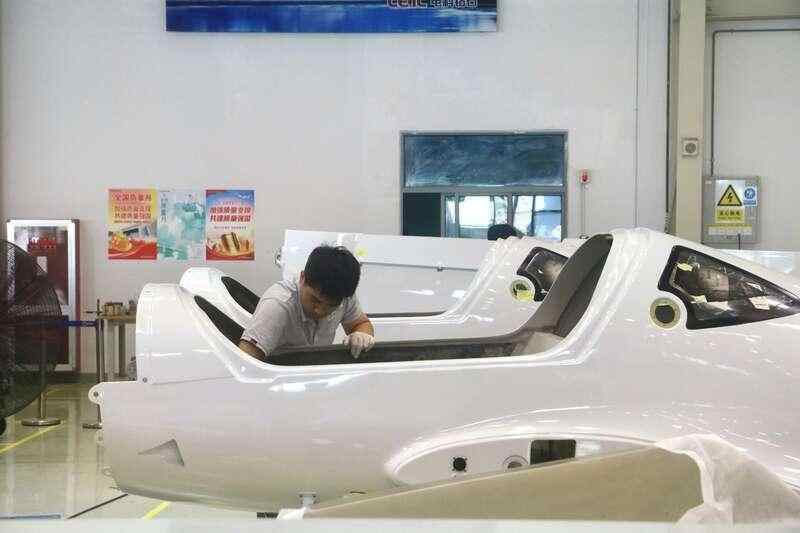 祁晨昊在机身内进行装配。中青报·中青网记者 王海涵/摄
