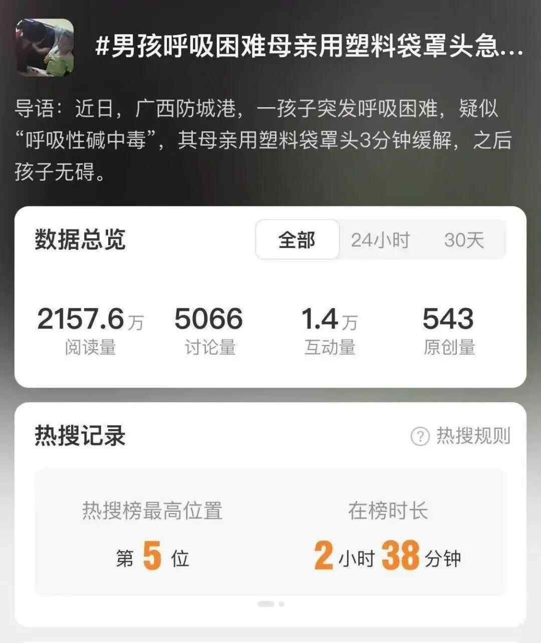 近日,羊城晚报“小羊拍客”一条视频登上了热搜。广西防城港一孩子突发呼吸困难,疑似“呼吸性碱中毒”,其母亲用塑料袋罩头3分钟缓解,之后孩子无碍。