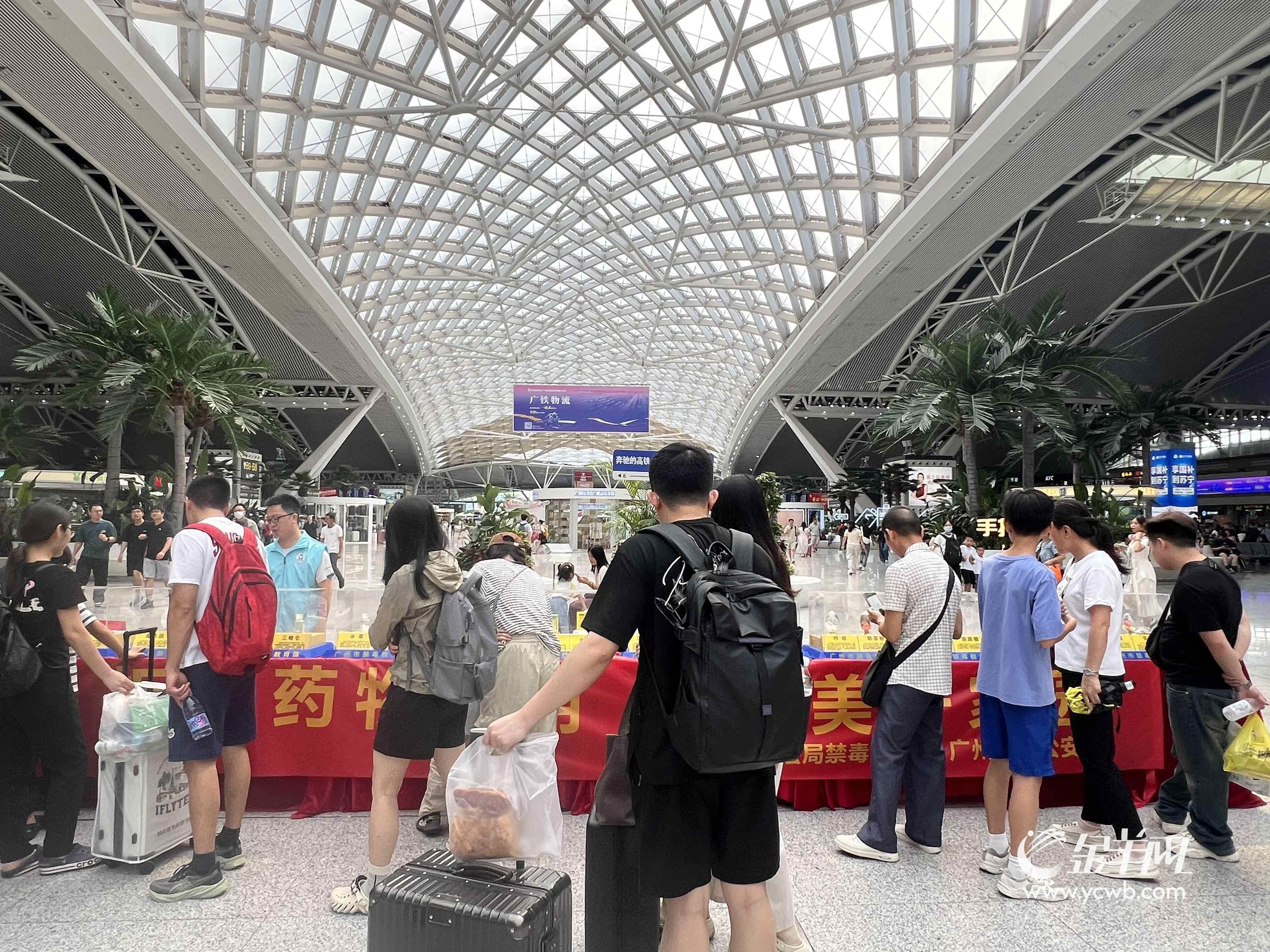7月5日,广州南站三楼出发大厅,一场名为“拒绝药物滥用 共建美好家园”的禁毒宣传活动吸引了来往旅客的驻足。日均客流量超10万人次的广州南站,化身流动禁毒课堂,让游客零距离接触权威禁毒知识。