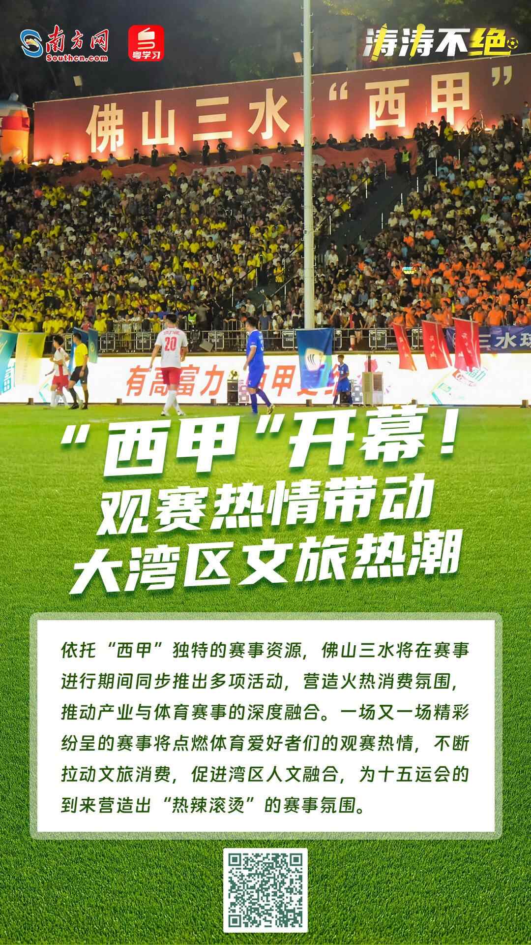 在佛山“西甲”之后,广东省足球超级联赛也将在7月开幕,而中超、中甲等各级别职业联赛也将进入白热化阶段。一场又一场精彩纷呈的赛事将点燃体育爱好者们的观赛热情,不断拉动文旅消费,促进湾区人文融合,为十五运会的到来营造出“热辣滚烫”的赛事氛围。