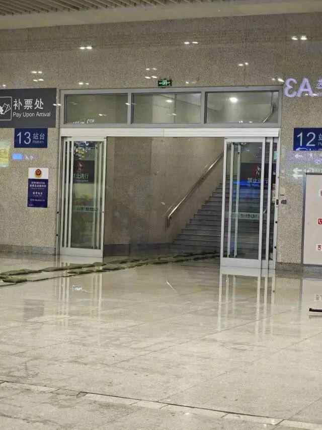7月3日,四川成都气象台发布暴雨红色预警。当晚7时许,成都东站出站口出现积水,极目新闻记者在12站台出站口看到,站台楼梯下出现积水,约可淹没脚掌,旁边的扶手电梯已停运。