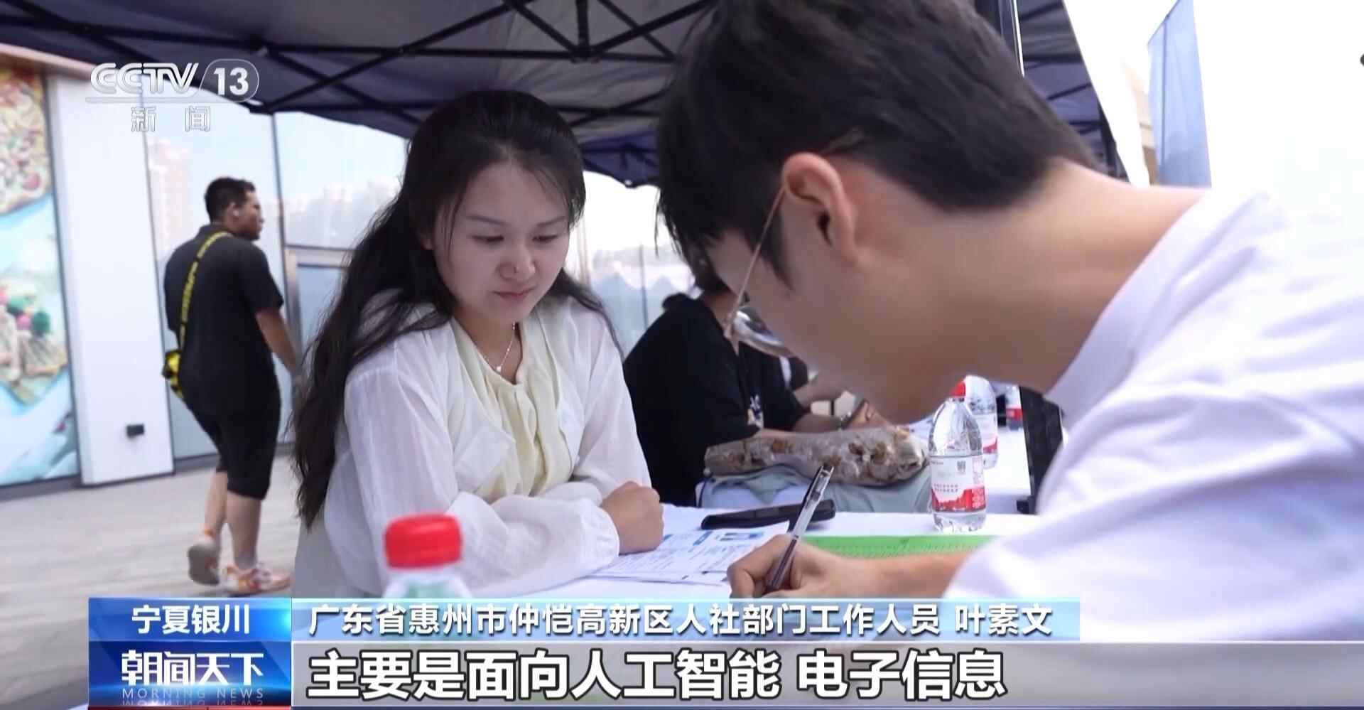 广东省惠州市仲恺高新区人社部门工作人员 叶素文:我们是来自惠州仲恺高新区的,我们这一次招聘主要是面向人工智能、电子信息还有智能制造,我们去年通过东西部协作和宁夏的人社部门已经建立联系,搭建了这个供需对接的一个桥梁。