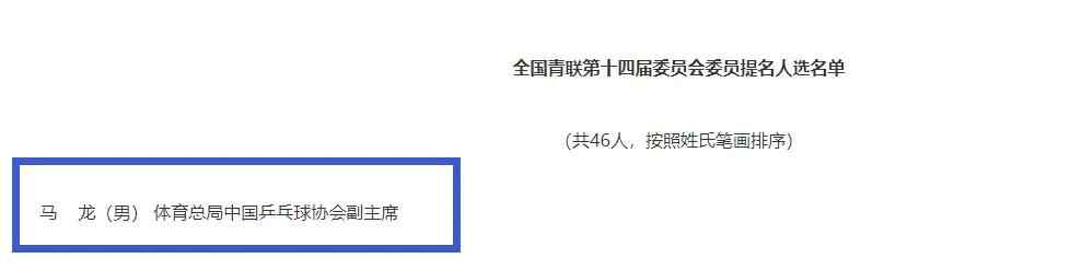 此前,今年6月,全国青联第十四届委员会委员提名人选公示,体育总局中国乒乓球协会副主席马龙为全国青联第十四届委员会委员提名人选。