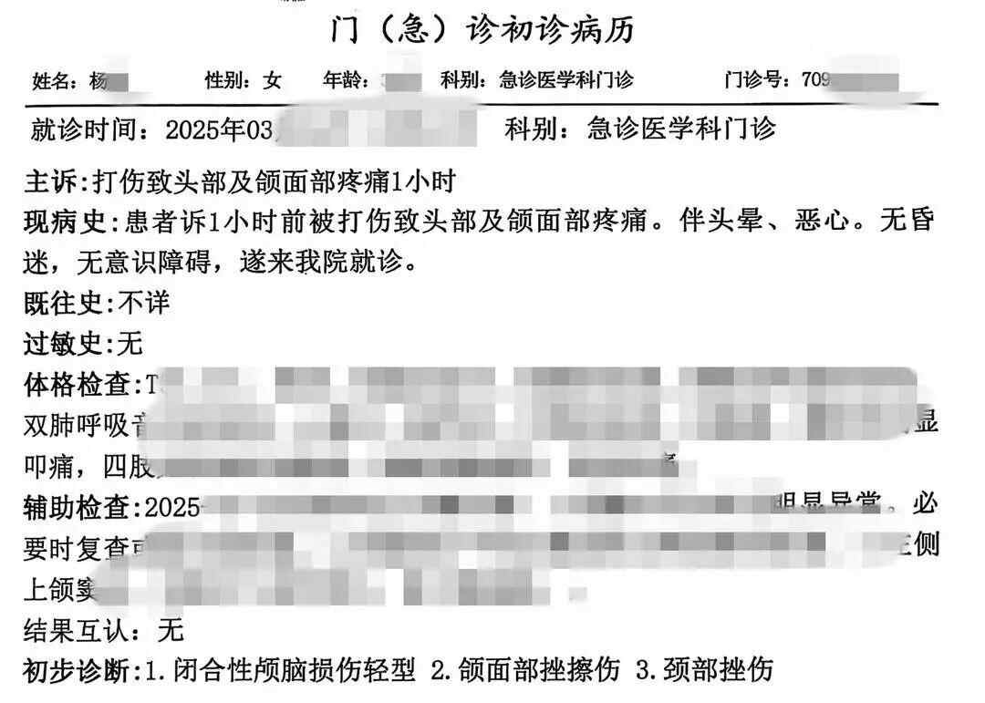 杨女士称被舒某殴打后的病历 受访者供图