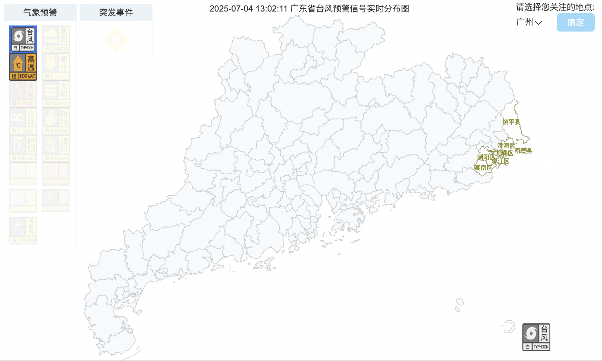 截至7月4日13时02分,汕头、潮州饶平等地,已率先发布台风白色预警信号。