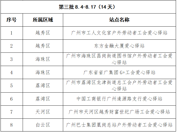 今年,广州市总工会“清凉一夏·致敬高温下的您”关爱新业态及户外劳动者活动将从7月4日持续至10月12日,共计101天。其间,广州市总工会联合爱心企业,将在全市11个区的56家工会爱心驿站,为新业态及户外劳动者免费派发超8万支雪糕。