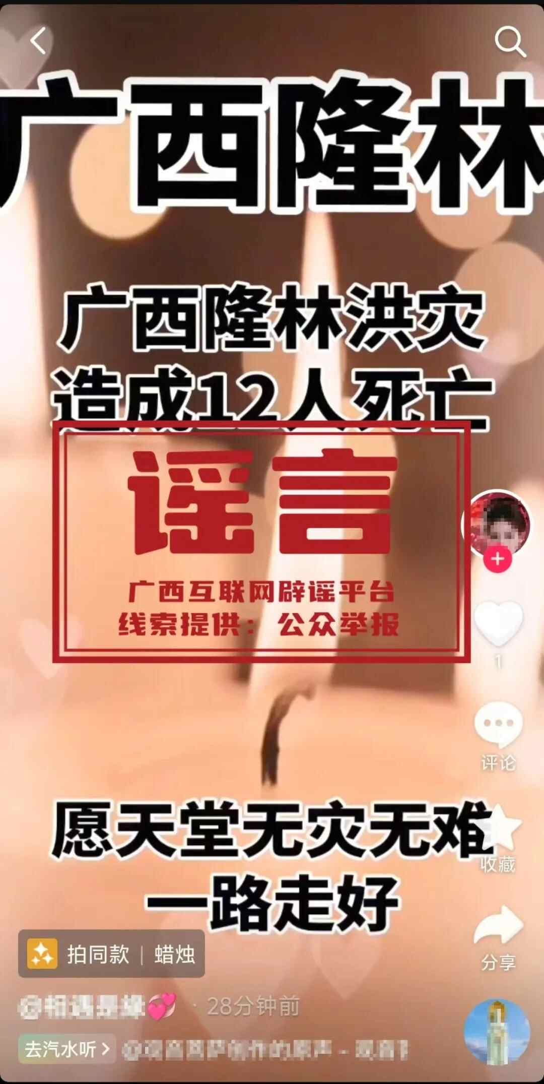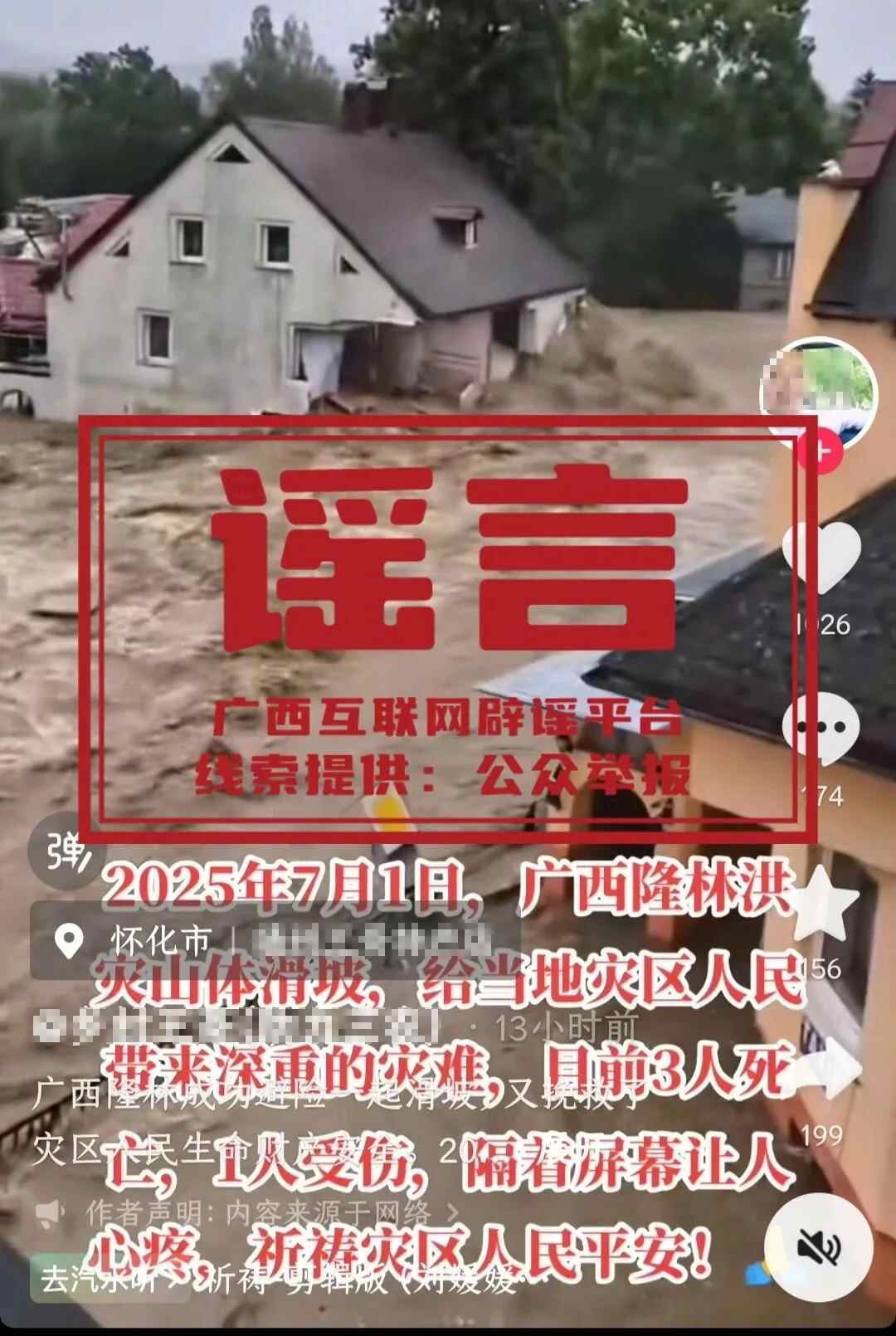 7月3日,部分网民在短视频平台发布视频称“广西隆林洪灾造成12人死亡”“2025年7月1日,广西隆林洪灾山体滑坡,给当地灾区人民带来深重的灾难,目前3人死亡,1人受伤,隔着屏幕让人心疼,祈祷灾区人民平安”,引发网民关注。