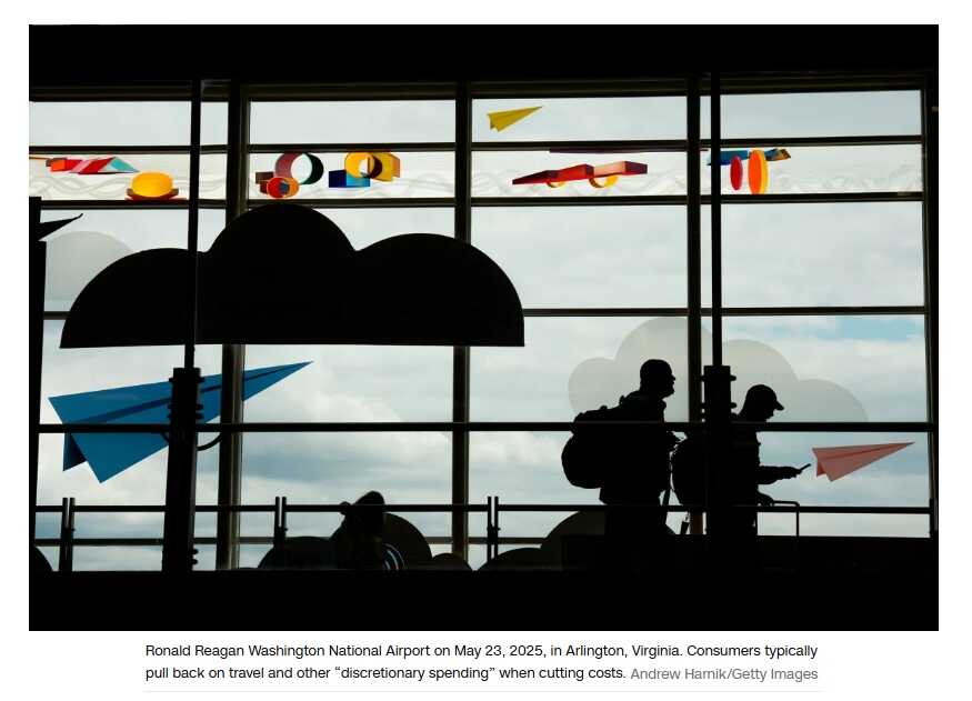 对于像威尔伯恩这样的家庭来说,春季的疯狂消费是对抗不确定性的“豪赌”,可能需要多年的精打细算来偿还债务。如今背负新债的美国人正缩减消费,尤其是餐饮、旅行等非必需支出。美国金融服务网站银率网(Bankrate)的调查显示,54%的美国成年人计划减少此类消费,高于去年的49%。商务部数据也印证了这一情况,五月份餐馆和酒吧的零售支出下降了0.9%,这是自二月以来的首次月度下降,也是自2023年2月以来的最大降幅。