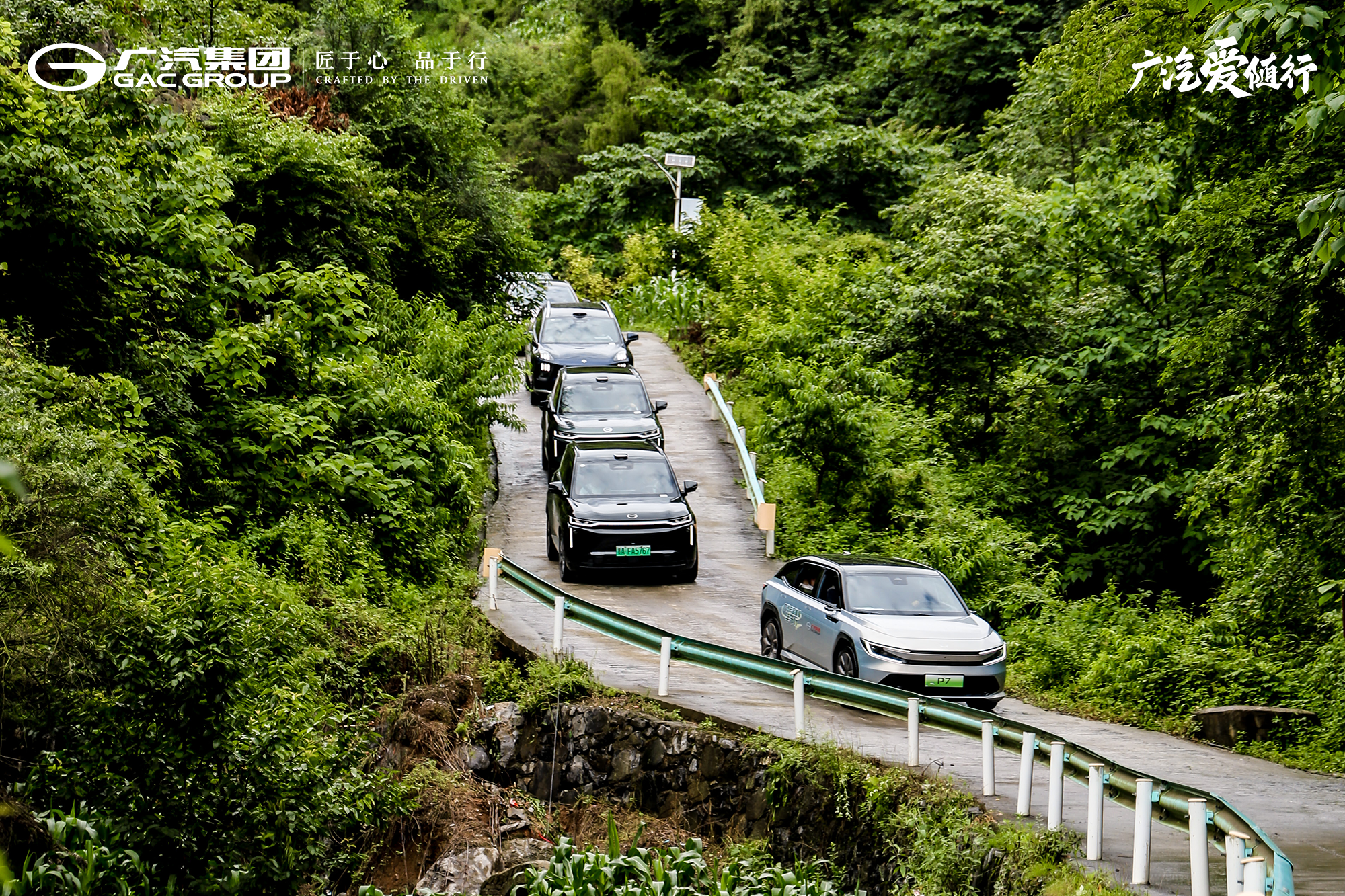 6月19日至21日,这支新能源车队深入贵州省毕节市山区,展开了一场集产品技术体验、社会责任践行与文化交流于一体的深度探索之旅。面对毕节复杂多变的喀斯特地貌,广汽车型以其卓越的底盘调校、舒适的座舱空间及丰富的科技配置,轻松应对盘山公路、连续飞坡等路况。