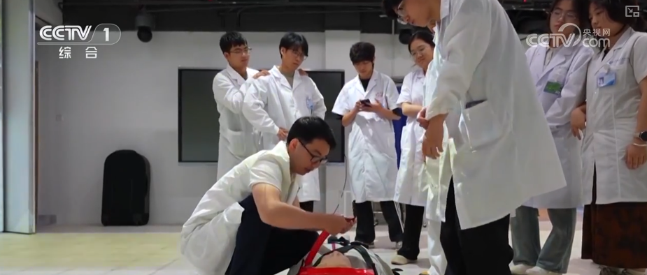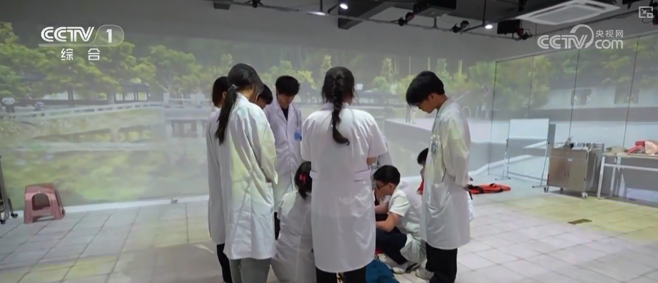 在南昌大学第一附属医院的模拟实训基地,同学们通过VR体验的方式,学习掌握老人们在逛公园或者遛弯时,如果突发疾病如何进行院前处置、快速评估老人身体情况实施救护管理、救护车到来后配合医务人员完成院前处置流程,这些在现实场景中常会碰见的突发情况的处理,未来也都是老年医学与健康专业学生们的必修课。