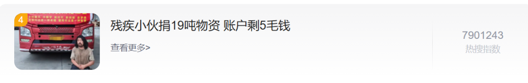 其中,宁夏中卫公益人士、“跪行巨人”胡雷筹集钱款购买物资,驰援榕江的善举获得高赞。此事引发网友热议,曾一度登上热搜榜第一位。