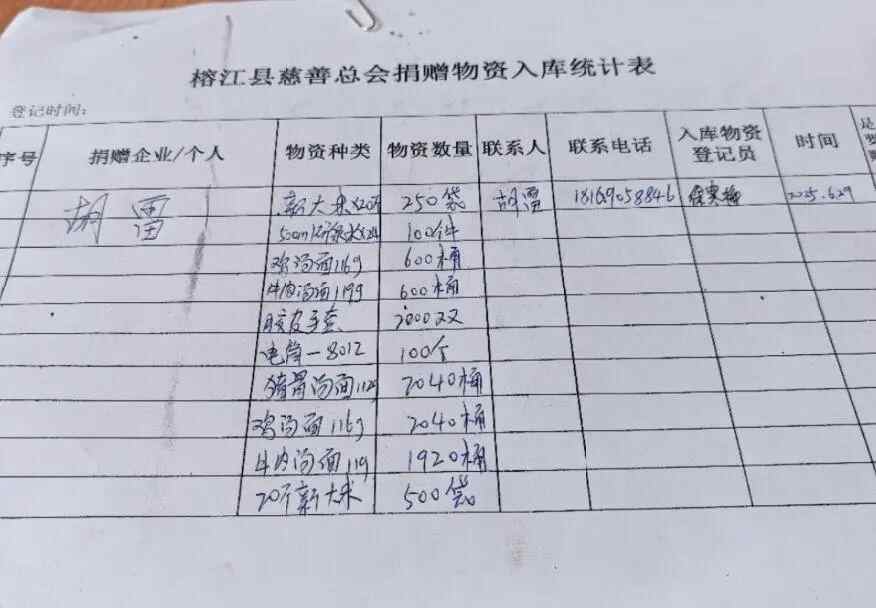 胡雷告诉记者,此次捐赠的物资包括他购买的1万斤大米、500箱方便面、500件矿泉水、100个手电筒、2000多双手套等,共计约5.5万元。他的钱款来自其近期直播、摆摊卖工艺品的收入,还有政府发的困难补助。另外,与胡雷同行的几位朋友还买了2万多元的物资。
