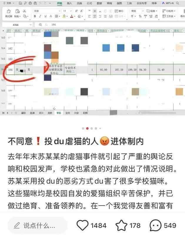 近日,有消息称,《桂林市2025年度事业单位公开考试招聘工作人员进入考察人选名单》中,考生苏某某曾因虐猫被华中农业大学给予严重警告处分。记者查询发现,桂林市人社局官网6月19日公布的名单显示,考生苏某某考取的单位是桂林市平乐县同安镇便民服务中心,考试总成绩位列该岗位第一名。