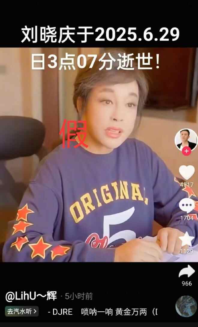 6月30日,@刘晓庆 在社交媒体晒出生活照,并附上了一张网络上流传她“去世”的图片。